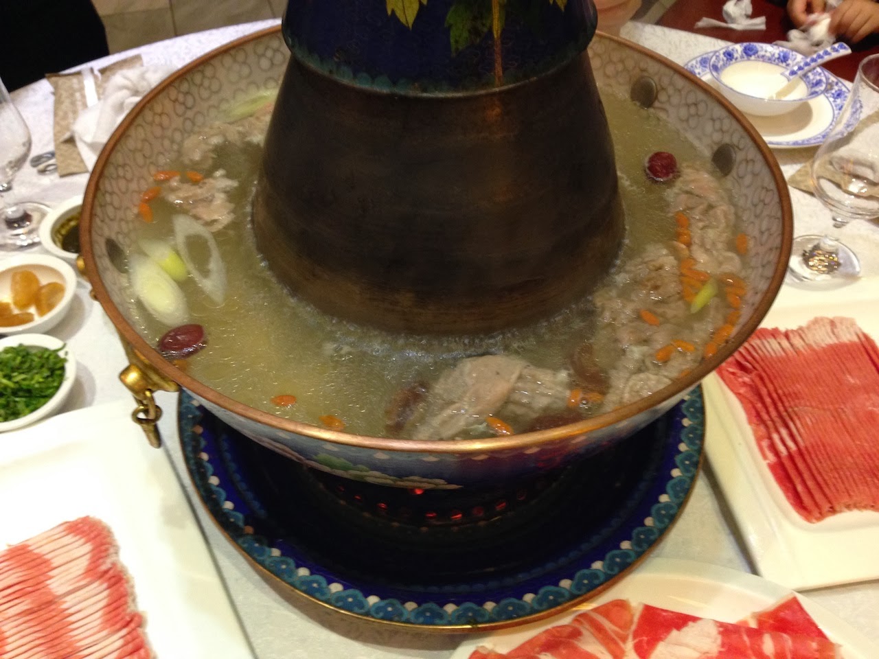 And there were some very traditional cooking. The "fire pot" or Lani calls it "hot pot" is a copper based pot with a mini chimney sticking out in the middle with coal fire. This heat up the soup in the pot and you dip thinly sliced meat, sea food, veges and pets and eat with specially prepared sauces. Classic winter meal that was replaced by electric versions these days. This is made the "old way". Meat are specially selected. A cut was called "snow flakes" where the meat slices has white spots of fats all over that makes the meat extremely tender. You can imagine how tasty the soup is after some cooking TIME. Exact age of this cuisine is still debatable but you are LOOKing at around 3000 plus years.